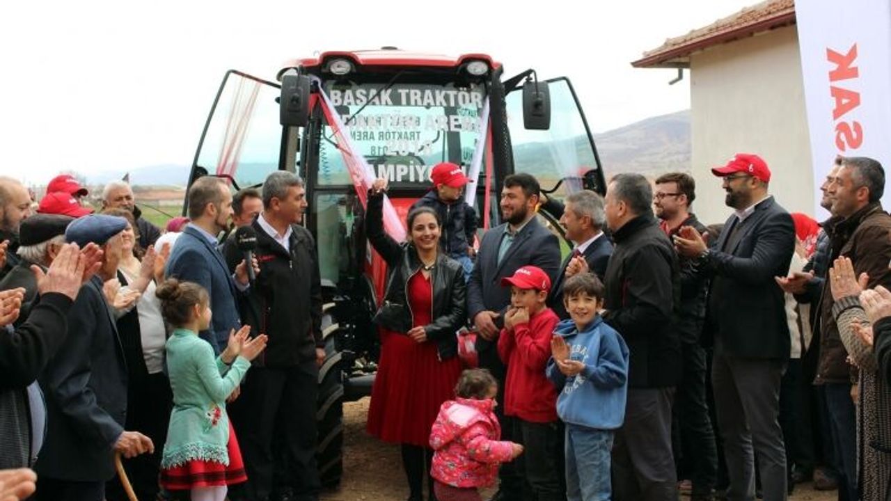 Başak Traktör ana sponsorluğunda Bereket Tv tarafından düzenlenen traktör yarışmasını kazanan Tokatlı Ahmet Tarık Oral, traktörü eşi Ahu Oral’a armağan etti.